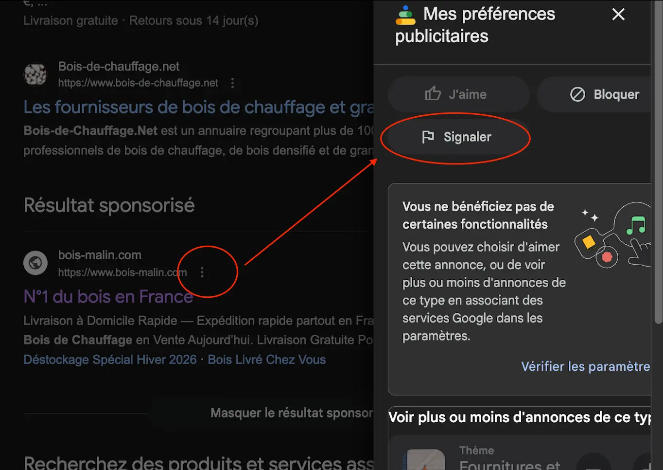 Voila comment dénoncer cette publicité à google